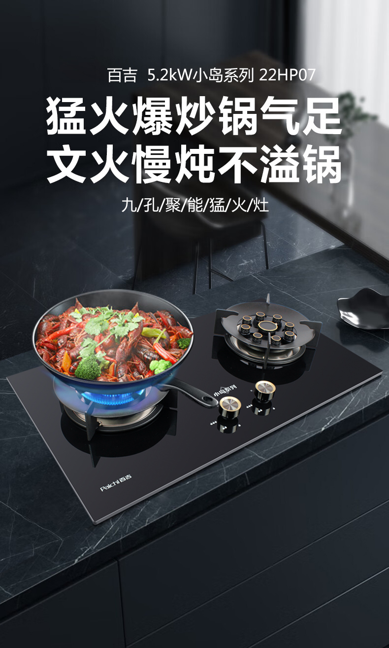 5.2Kw聚能猛火,63%熱效率一級能效,帶熄火保護